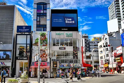 東京は高層ビルが立ち並んでおり、屋上看板広告や壁面看板広告が設置しやすい環境です。さらに、通行人の多さから看板を設置することで、高い広告効果が見込めます。