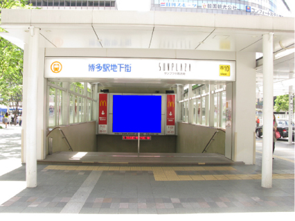 JR博多駅博多口を出て真正面!待ち合せ場所にもなるスポットで迫力ある大画面と音質でPR効果絶大です!