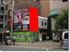 三宮駅北側にある南谷ビル近辺には飲食店・事務所・商店の雑居ビルや集合住宅が建ち並んでいます。生田神社へ参拝者や食事処を探す歩行者への広告効果が見込めます。三宮駅周辺は神戸都市圏の都心地域(中心業務地区)を為していて、商業地域として繁華街やオフィスが立ち並ぶ街なみです。繁華街なだけあって行きかう歩行者の数も多く、アプローチ率は高いといえます。 ドリンクの自動販売機の上の看板なので、のどが渇いてジュースを買いに来る人に向けても広告が打てます。