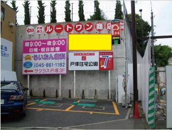 東海道沿い且つ、JR戸塚駅からすぐ近くの位置にあります。 人通り、交通量共に非常に多いです!大きさは150×300(cm)で、コインパーキングの後ろにある広告媒体です。近辺にはスポーツ施や、駅に連結した商業施設もあり、車を利用して訪れた駐車場利用客に強くアプローチできます。