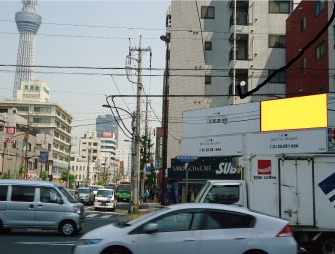 蔵前橋通りと四ツ目通りの交差点にある看板広告です。