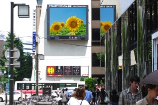 博多駅筑紫口を出て真正面に見える大型ビジョンは歩行者の目を釘付けにします!