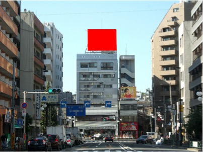 道灌山通りと不忍通りが交差するT字路の真正面に看板が位置している為、進行方向の正面近くに媒体を視認出来ます。