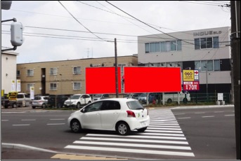 高さ3m x 幅4mの媒体+高さ3m x 幅8mの媒体 2面からなる媒体です。