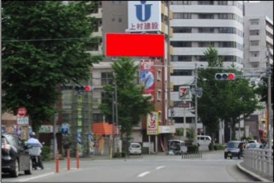 百年橋通り沿いの印藤ビルに設置されている看板広告は、ドライバーへのPRに適しています。また歩行者や自転車に乗った状態でも自然と目に入る位置に設置されています。百年橋通りは4車線で交通量が見込める通りです。