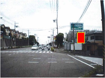県道45号線沿い、ひかりが丘交番前交差点そばに設置されている看板広告です!※同じ場所に反対車線向け、別サイズで看板広告が出せます