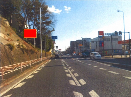 4車線ある第二京浜沿いの斜面に設置されており、ドライバーへのPRに適した看板広告です。看板広告の周辺には、ENEOS(エネオス、D.Dルクレーン東寺尾店)、デニーズ 鶴見一国店、島忠ホームセンター・横浜店、洋服の青山横浜東寺尾店があります。クルマでショッピングする顧客層へのPRができます。