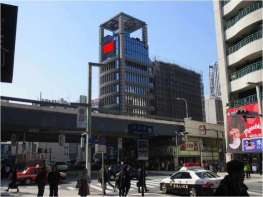 ビジネス街の新橋駅汐留口徒歩2分、中央通りの歩行者と東京高速道路・銀座から視認できる看板広告です!