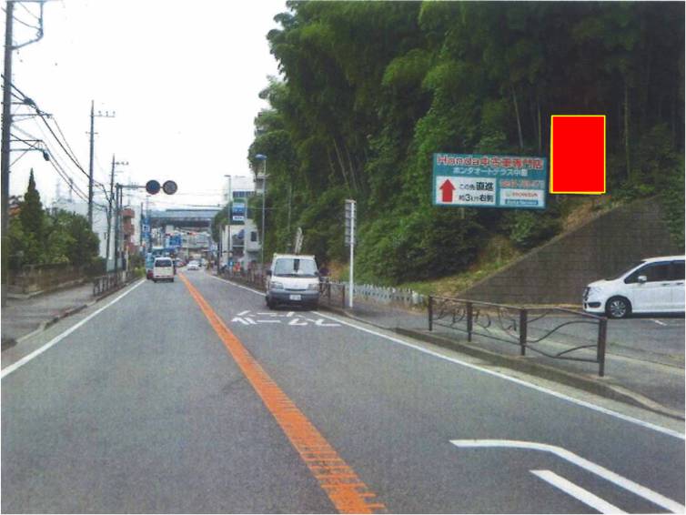 武蔵溝ノ口駅から線路を離れて元住吉駅まで走っている国道14号線。こちらの看板は14号線を元住吉駅方面に向かって走る方向にアプローチできる広告媒体です。川崎市立橘中学校も近くに隣接しており、他にも神奈川県立新城高等学校、川崎市立橘小学校も通り沿いに建っています。歩行者の視野にも入る立地条件をいかした広告を載せるのに最適です。