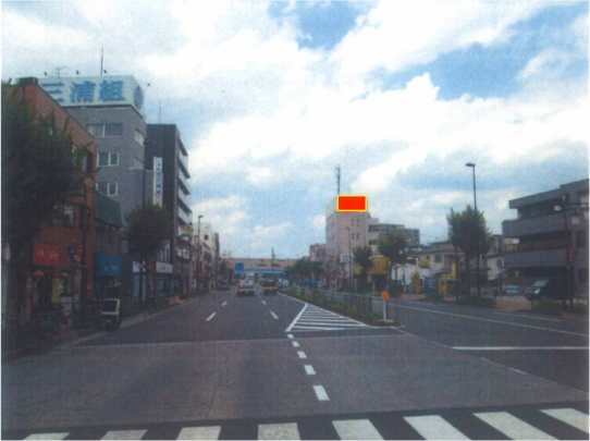 都道18号線の新府中街道沿いに面した5階建てビルの屋上部分の看板媒体です。ビルの場所は多摩川の方向に走る車線沿いとなります。京王線の中河原駅も近くにあることから通行人にもドライバーからも目に留まる機会の多い、恵まれた立地条件の媒体と言えます。さらに、小学校、保育園、図書館、郵便局、病院がいずれも200m範囲内にあり、多くの人が道を利用することが考えられます。