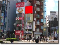 JR大久保駅隣ビル屋上看板(3面、ホーム、電車より見えます)
