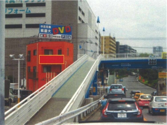 新横浜駅は日産スタジアムや新横浜ラーメン博物館などの観光スポットが近隣にあることで、観光客も多く訪れる土地です。その新横浜駅から1キロ以内の国道13号線沿いのビル壁面にあるのがこちらの媒体です。12号線との交差点にあるので、多くのドライバーからのウォッチが可能です。