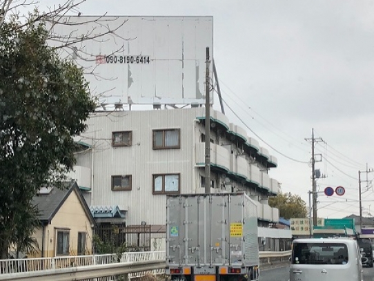 川越街道沿いのマンションの屋上広告になります。ちょうど空きが出ましたので先着順になります。過去携帯電話会社、飲食店、金融機関、政治団体のお客様から掲載いただいています。