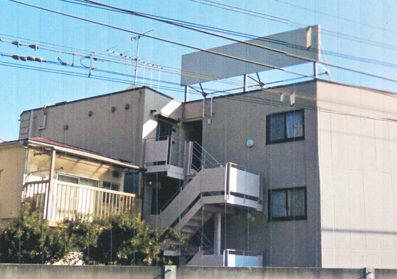 京王線上北沢駅のホーム八幡山側端から100ⅿの線路沿いの3階建て建物屋上にある既設の看板。以前は幻冬舎の看板があった。現在不使用。