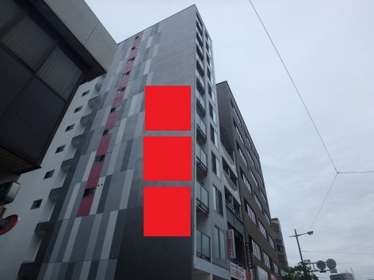 国道183号線沿い、広島電鉄横川線沿いの新築マンション壁面看板広告です!