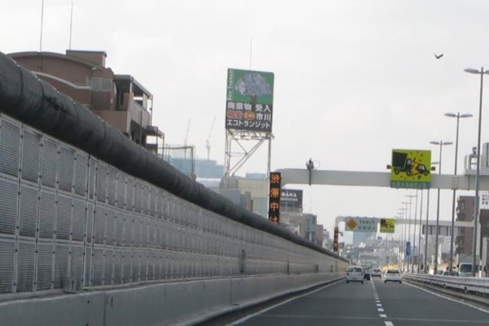 首都高速7号小松川線 上・下線に向けて訴求ができる看板広告です。