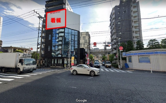品川区、新馬場駅から徒歩1分。国道15号線沿い、交通量も多く国道に面しているので人目につきやすい看板です。近くには繁華街もございます。屋上看板のため4面ございます。4面ご利用の場合は割引価格となります。