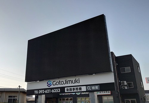 朝夕は渋滞することも多い、博多バイパス沿いに設置してあるLEDビジョンです。交通量が多く、かつロードサイド広告でありながら訴求時間が長いのも特長です。