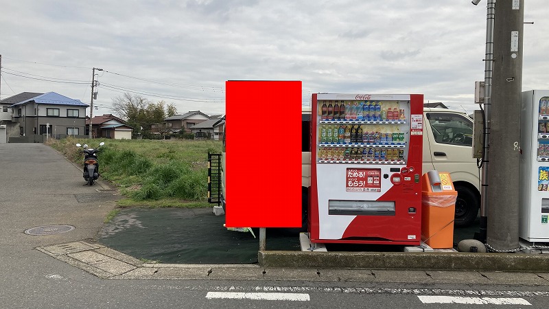 汲沢西団地店舗併用住宅「西ビル」そば。コカ・コーラ自販機横。