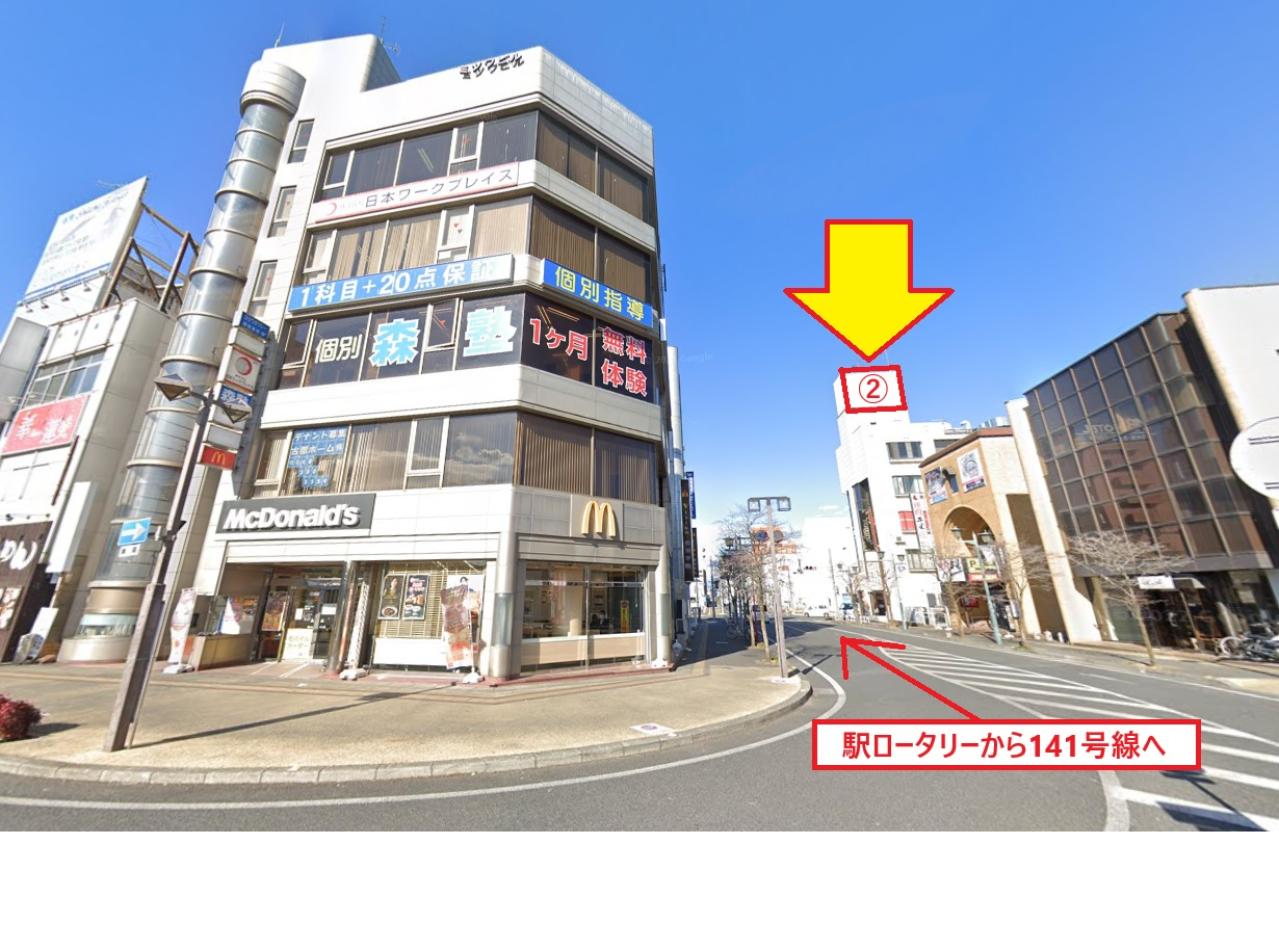 深谷駅北口ロータリーを出て徒歩2分 交差点角地。駅を出て141号線沿い。国道17号線へ抜ける道。駅利用者への需要あり。住宅・観光地につき平日休日ともに通行あり。