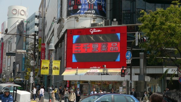 渋谷スクランブル交差点に位置する街頭ビジョンで音声も歩行者に届きやすく、目立ちます!