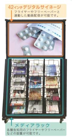 サイネージで注意喚起!ラックのフライヤーで詳細を説明!!ハイブリッド情報発信ツール!!!