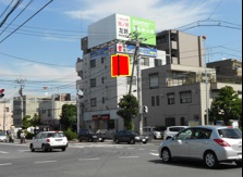 商業ビルの広告ケージスペースにサイズによっては2区画。最上階手すりも横断幕形式であれば掲出可。