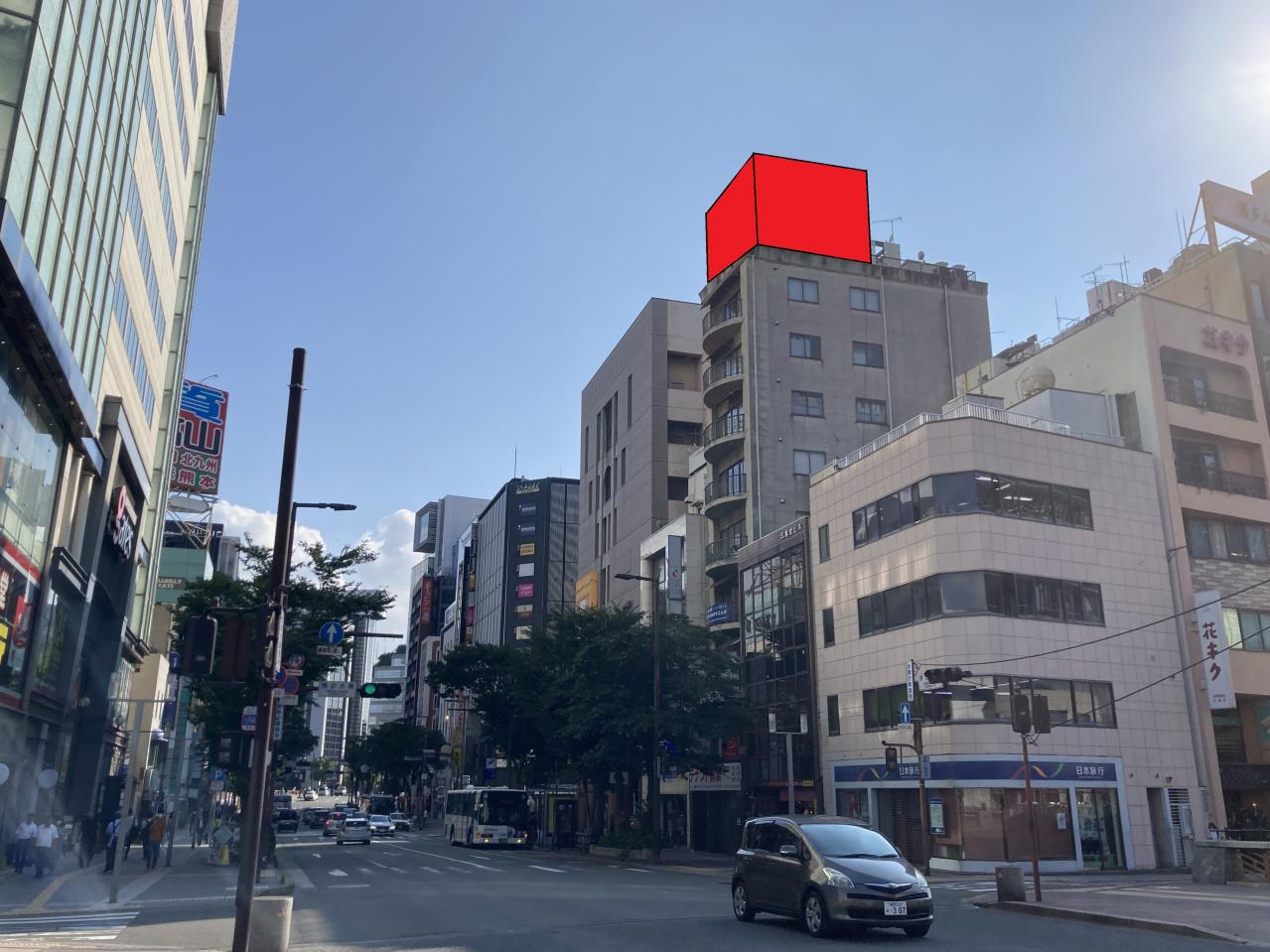 中洲川端駅から徒歩1分の至近距離、福岡の繁華街・中洲の中心エリアに立地する視認性の高い屋上広告です。