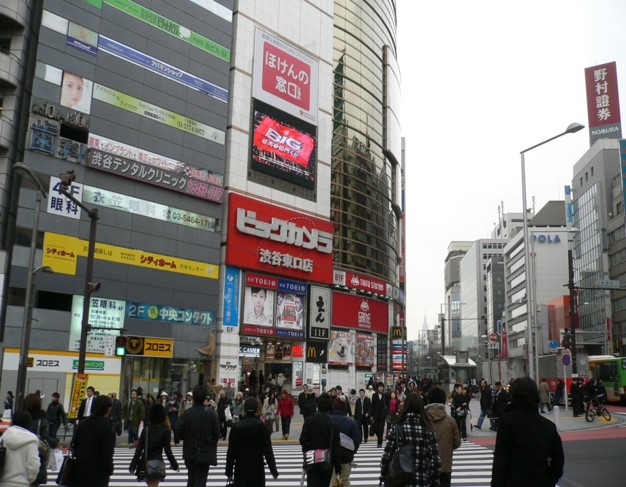 谷宮益坂交差点の信号待ち歩行者から視認性がよく、東映プラザビルはアミューズメントビルとしてビル自体の集客力も高い為、周辺は昼夜を問わず賑わいます。