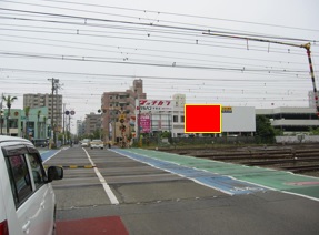 東海道線平塚駅東側にある一つ目の踏切脇にある、南向きの好立地な看板広告です!