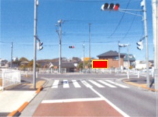 都道18号線大蔵交差点近くのT字交差点の正面にある、車両・歩行者双方から視認出来る好立地な看板広告です。