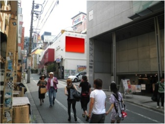 人通りと賑やかさが絶えない町、渋谷のクラブシーンに位置する看板広告です。音楽好きな若者などに訴求可能です。