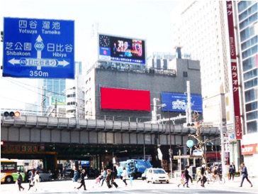 外堀通りにあるビル壁面に設置された看板広告です。高い位置にあり、東海道新幹線利用者にも訴求可能な場所にあります。