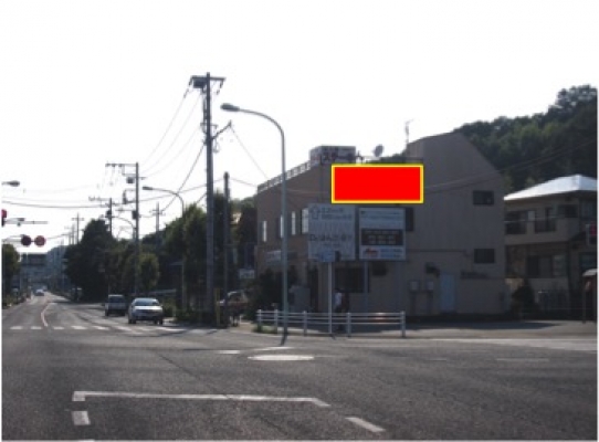 神奈川県道・東京都道57号相模原大蔵町線 新袋橋交差点のレストラン岩火焼ステーキ店の側にある看板広告です。