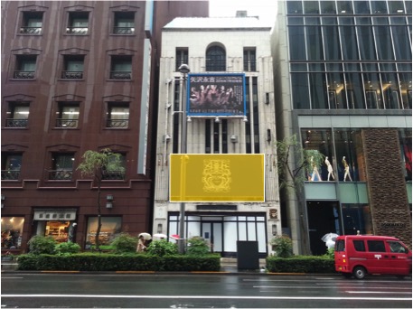 銀座数寄屋橋交差点 大規模5丁目プロジェクトを今秋に控えた今最も話題のエリア、旧電通通りを挟んだ正面向かいの「銀座JUN MEN跡ビル」のウォールアド 9月1日発売開始!!