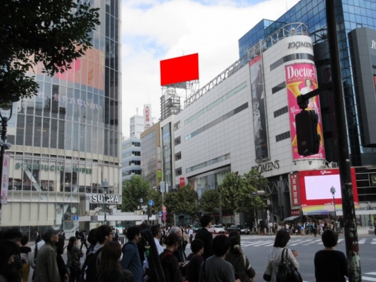 渋谷スクランブル交差点及び丸井シティ前からよく見える大型の屋上看板広告になります。