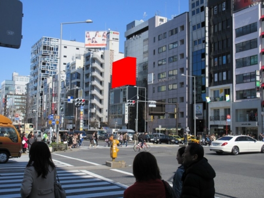 表参道、青山通り沿いにあり、表参道交差点や青山通り外苑前方面からもよく見える好立地な看板広告です。